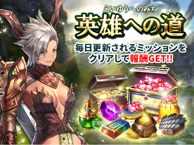条件達成で「無償ブルーダイヤ」や「極級強化石」「超級ジュラスの祝福」などの強化アイテムも獲得できる「英雄への道」開催!ミッションを達成することで入手できる「英雄ポイント」を交換して様々なアイテムを獲得できます。貴重な強化アイテムを手に入れて、お気に入りのキャラクターを育成しよう!