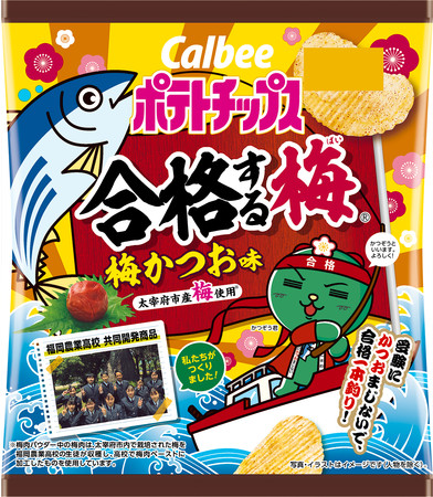 カルビー株式会社(本社:東京都千代田区、代表取締役社長兼CEO:伊藤 秀二)は、福岡県立福岡農業高等学校(福岡県太宰府市、以下、福岡農業高校)と共同で開発した受験生を応援する厚切りのポテトチップス『ポテトチップス合格する梅(ばい) 梅かつお味』を2021年12月13日(月)から中国・四国・九州エリアにて数量限定で発売します。商品は無くなり次第終了となります。