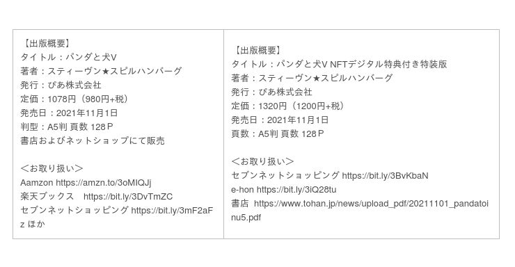 「パンダと犬」とは、“老犬ビーグル”梅吉との日常をインスタグラムに描いた4コママンガ。最新刊は、通常版のほか、コミック初となる「NFTデジタル特典付き特装版」を発売。ネット書店では発売早々に完売しました。(書店では現在も取り扱い中。取り扱い書店 https://www.tohan.jp/news/upload_pdf/20211101_pandatoinu5.pdf )