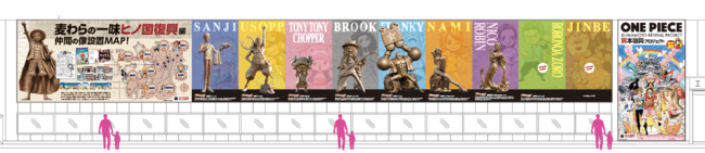 ●「麦わらの一味」の銅像 W28.8m×H3.9m