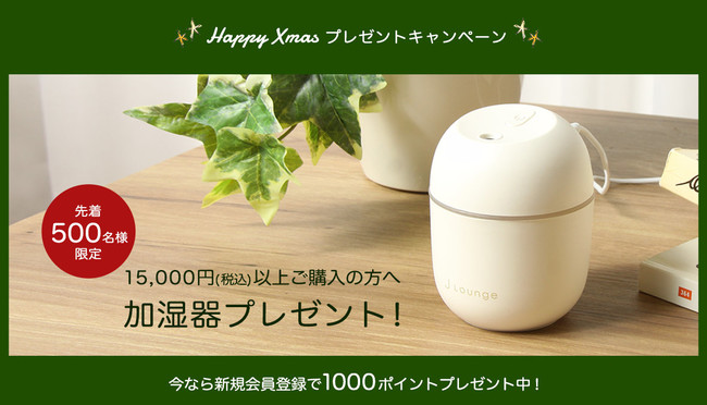 ファッション通販サイト【J Lounge】からクリスマスプレゼントキャンペーン!先着500名様にオリジナル加湿器をプレゼント