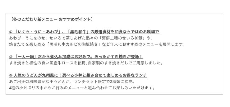 「冬の美味」フェア メニュー概要