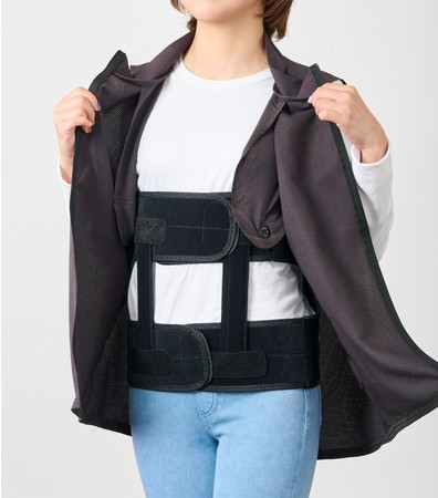 今までの専用装具は完成までに時間がかかり、患者さまが必要なときにすぐ寄り添う事が難しい場合が多かったです。また、患者さまも専用装具を着用して帰宅後、一度外すと装着しなおす事が難しく、装着できても正しく固定できていない場合がありました。『bonbone Kitai ウエスト』は「さっと、着て帰れるギプスホルダー」。本体はギプスシーネを入れられるコルセット型ホルダーになっており、一般的にクリニックで使われているギプスシーネをセットする事が出来ます。また、ウェア構造になっているので羽織るだけで正しい位置に調整して着用出来ます。ギプスシーネを使う事でその場で患者さまに商品を提供する事が出来る為、すぐに寄り添う事ができます。今後は他の部位や、関節専用の「bonbone Kitai」シリーズの展開を進めていきます。