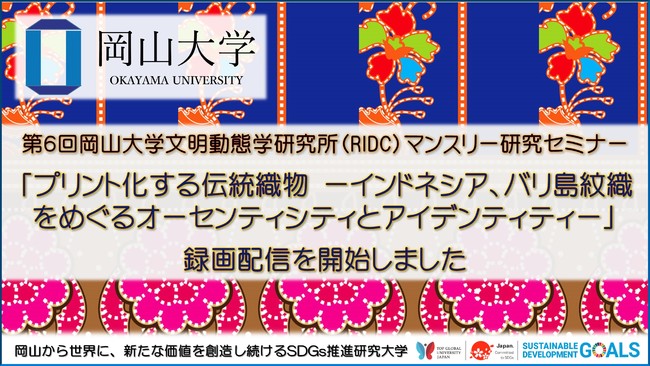 【岡山大学文明動態学研究所】「プリント化する伝統織物-インドネシア、バリ島紋織をめぐるオーセンティシティとアイデンティティ-」 の録画配信を開始しました