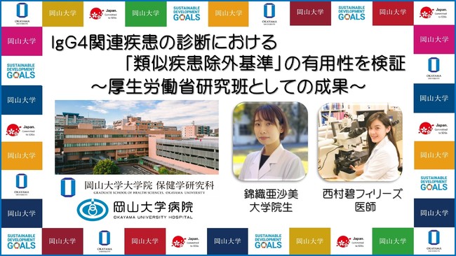 国立大学法人岡山大学(本部:岡山市北区、学長:槇野博史)の岡山大学大学院保健学研究科の錦織亜沙美大学院生、岡山大学病院病理診断科の西村碧フィリーズ医師、学術研究院保健学域の佐藤康晴教授らの研究グループが、厚生労働省の研究班員とともに、IgG4関連疾患の診断における「類似疾患除外基準」の有用性について検証しました。