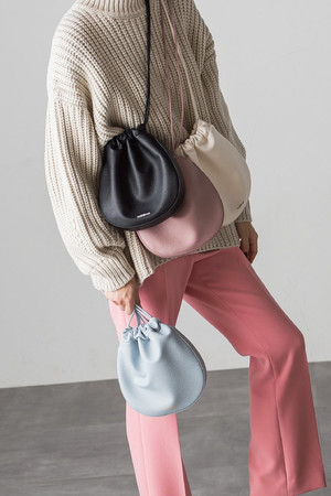淡いペールトーンのカラーリングと柔らかな合皮が春を思わせる巾着バッグ
