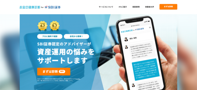 このたびの「お金の健康診断 for SBI証券」の提供により、資産運用に悩みを持つ方に対して、IFAのアドバイスによる付加価値の高いサービスが提供できるものと期待しています。