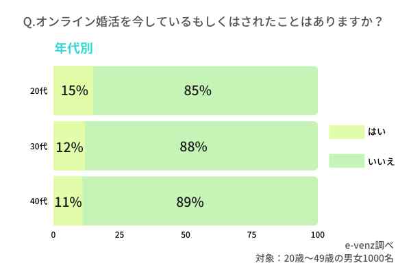 婚活・恋活や街コンなど中心とする男女の出会いメディアe-venz(イベンツ)を運営するノマドマーケティング株式会社(所在地:東京都渋谷区、代表取締役:三輪賢治)では、全国の未婚男女1,000名を対象にオンライン婚活についてのアンケートを実施しました。