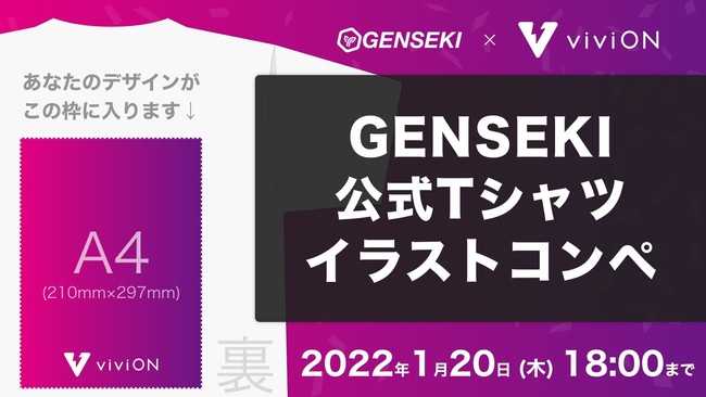 株式会社viviON(以下、viviON、所在地:東京都千代田区、代表取締役:明石耕作)は、2021年12月1日に事業譲受したイラストレーター応援プラットフォーム「GENSEKI」において、12月13日(月)より「GENSEKI」公式のTシャツに使用するイラストの募集を開始したことをお知らせいたします。