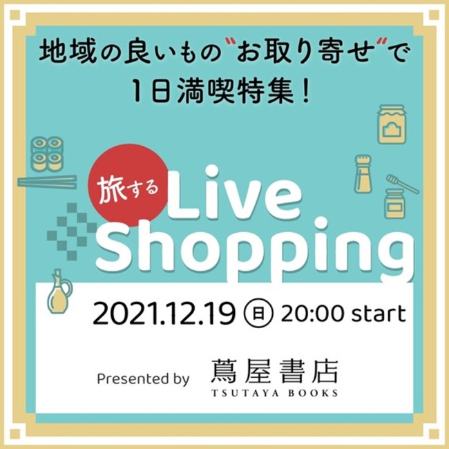 地方に展開する蔦屋書店のスタッフが厳選した物産品を紹介するLIVEイベント「地域の良いもの『お取り寄せ』で1日満喫特集! ~旅するLive Shopping~」を、2021年12月19日(日)20:00より、多賀城、海老名、和歌山、高梁、周南、武雄、延岡の合計7箇所の蔦屋書店で開催致します。(※店舗一覧は下記のとおり)