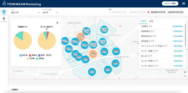 「TOWNEAR Marketing」を活用し、指定エリアのにぎわいをモニタリング