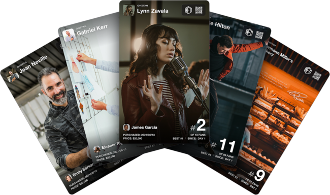 ファンは、クリエイターアカウントへのサブスクリプション登録を行うことでシリアルナンバー付会員証明書(ONEFAN ID NFT)を取得することができます。一方でクリエイターは、ONEFAN IDを分析することで、自身のファンの熱量をより容易に可視化することができます。サブスクリプション料金は、月額200円から自由に設定することができます。また、ファン自身がプラットフォーム内でONEFAN ID NFTをアップグレードしたり、トレードで収益を得たりすることが可能なため、従来のファンクラブサービスとは違った付加価値をクリエイターは自身のファンに対して生み出すことができます。