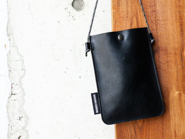 上質で驚くほど厚手のレザーに対して、ミーリング加工をほどこし柔らかく仕上げた。ひと手間を加えることで強度を保ったママすこしマチのあるものも収納可能な柔らかさに。薄マチながら存在感がある独特な表情を纏った。