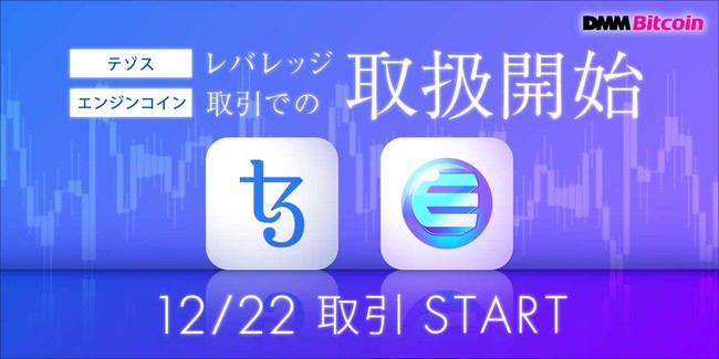 DMMグループの株式会社DMM Bitcoin(本社:東京都中央区、代表取締役社長:田口 仁、暗号資産交換業 関東財務局長 第00010号、第一種金融商品取引業 関東財務局長(金商) 第3189号 https://bitcoin.dmm.com/ )は、12月15日(水)より、レバレッジ取引において新たに「テゾス(XTZ)」、「エンジンコイン(ENJ)」の取扱いを開始いたします。