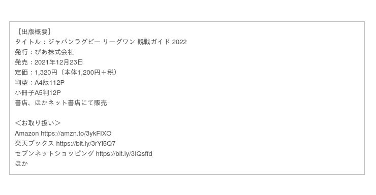 12月23日にぴあ株式会社より、『ジャパンラグビー リーグワン 観戦ガイド 2022』が発売。本日、その中面を公開いたします。