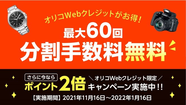 Webクレジットとは、クレジットカードがなくてもインターネット上で便利な分割払いのお申込みができる決済サービスです。XPRICE本店では、通常分割回数ごとにかかるオリコWebクレジットの手数料が最大60回まで無料になります(※1)。さらに、2022年1月16日(日)までオリコwebクレジットで20万円以上ご購入のお客様にポイントが2倍(※2)になるキャンペーンを開催!クリスマスや年末年始で奮発したお買い物をする時期にぴったりです。