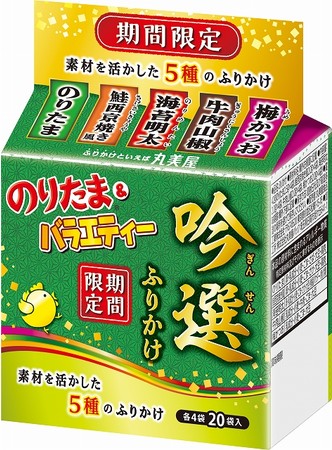 丸美屋食品工業株式会社(本社:東京都杉並区、社長:阿部豊太郎)では、色々な種類が楽しめるミニパックシリーズから「期間限定 のりたま&バラエティー 吟選」を2022年1月13日(木)から9月30日(金)までの期間限定で販売いたします。
