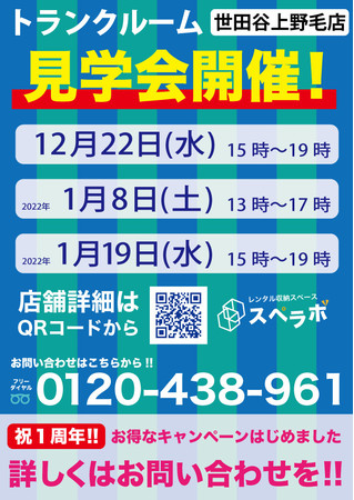 祝1周年 お得なキャンペーン中「スペラボ」世田谷上野毛店特別見学会実施します!!トランクルームを利用して生活をより快適にしましょう!!