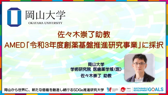 【岡山大学】佐々木崇了助教がAMED「令和3年度創薬基盤推進研究事業」に採択
