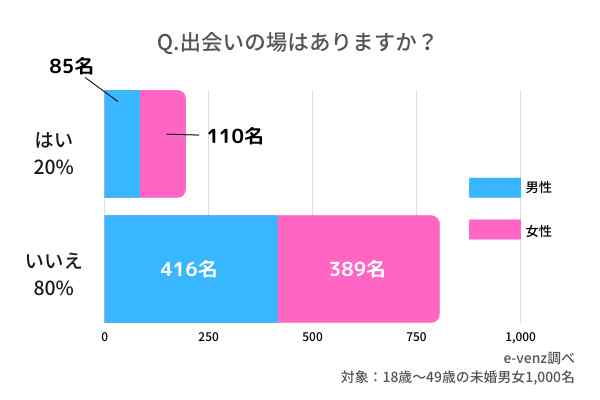 男性女性共に8割の方が、出会いの場がないと回答されています。