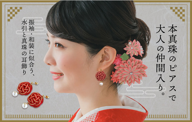 〈Pearl for Life by 真珠の卸屋さん〉日本の伝統工芸品・水引を使用した、振袖・和装に似合う限定デザインパールピアスを新発売!