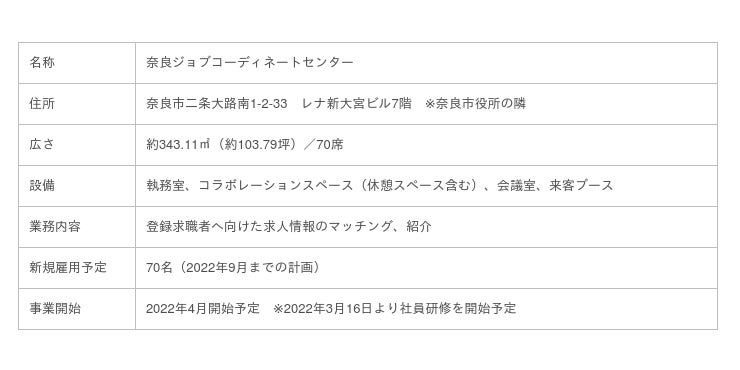 このたび新設する「奈良ジョブコーディネートセンター」においても同様の成果が期待できます。