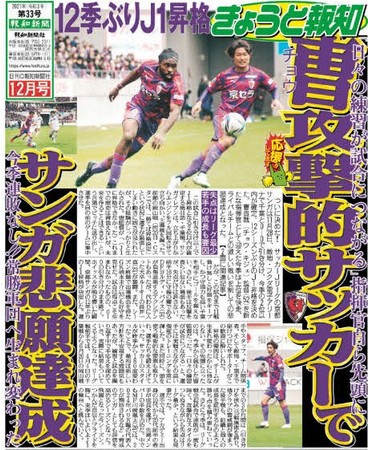 サンガ12季ぶりJ1!スポーツ報知発行「きょうと報知12月号」12月24日(金)発行