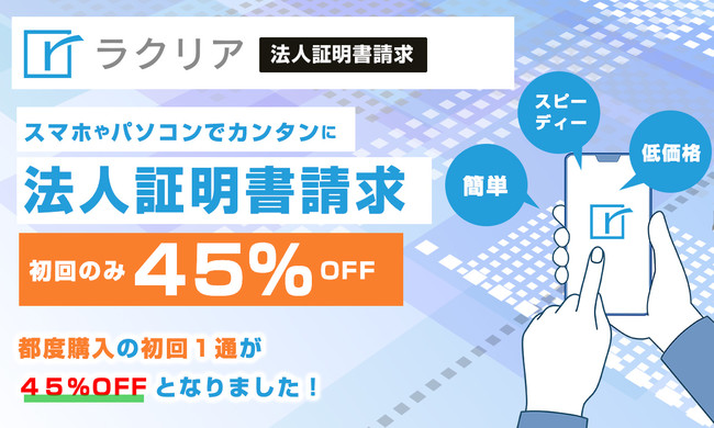 オンラインで法人証明書取得「ラクリア法人証明書請求」初回一通450円OFFの550円で販売開始