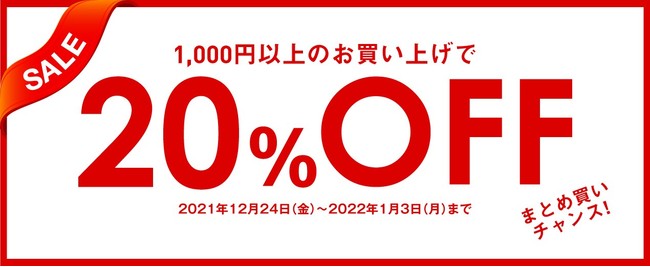1,000円以上のお買い上げで決済時に合計額から20%の割り引きとなります(12/24-1/3)