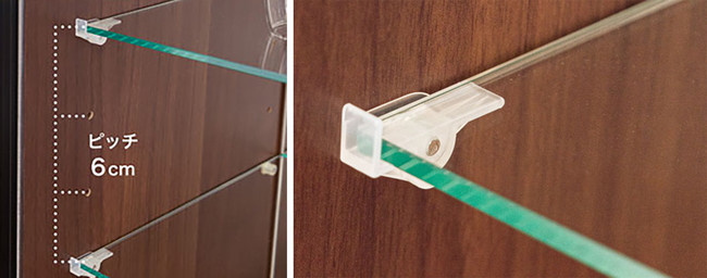 棚板の高さは6cm間隔で調整可能になっており、高さのあるコレクションも収納可能です。