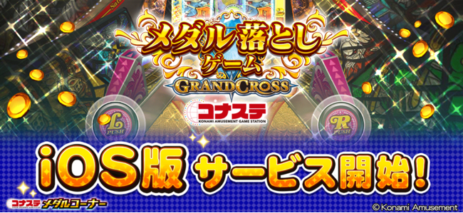 株式会社コナミアミューズメントは、『メダル落としゲーム GRANDCROSS コナステ』iOS版のサービスを開始したことをお知らせします。