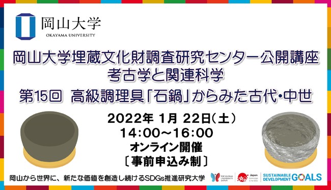 国立大学法人岡山大学(本部:岡山市北区、学長:槇野博史)の埋蔵文化財調査研究センターでは公開講座として、「考古学と関連科学 第15回 高級調理具「石鍋」からみた古代・中世」を2022年1月22日(土)にオンライン(zoom)で開催します。