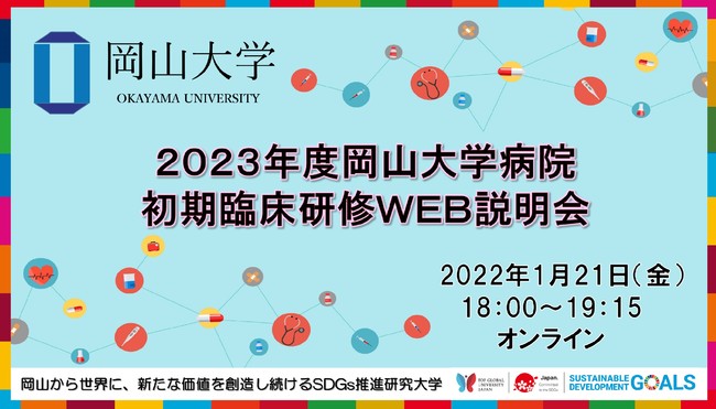 国立大学法人岡山大学(本部:岡山市北区、学長:槇野博史)の岡山大学病院卒後臨床研修センターでは、2022年1月21日(金)に「2023年度岡山大学病院初期臨床研修WEB説明会」を開催いたします。