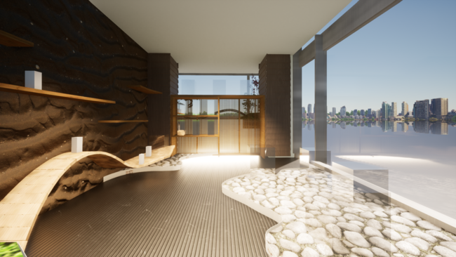 日本造園技法である枯山水から着想し、自然をモチーフにしたデザインを取り込んでいます。