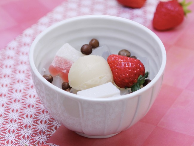 甘酸っぱい苺×濃厚ミルク餡のほどよい甘さが癖になる。「苺ミルクあんみつ」を1月8日より販売いたします。