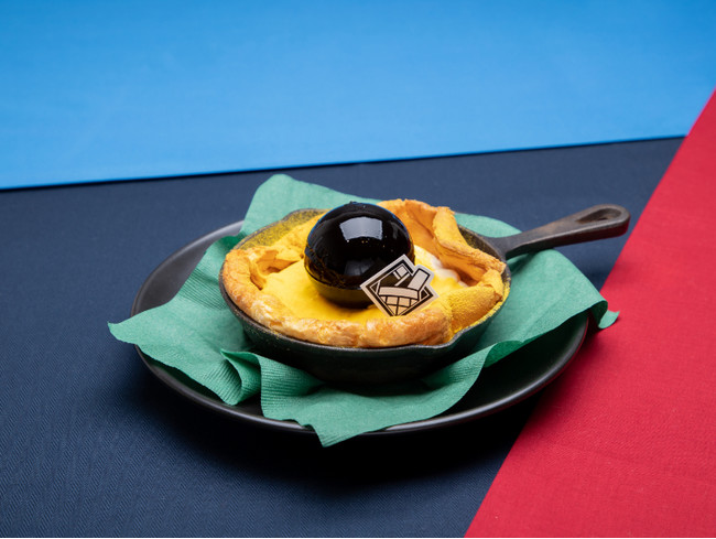 ダッチベイビーにマスカルポーネホイップと夏油の術式をイメージしたコーヒーゼリーをのせました。コーヒーゼリーを崩すとティラミス風にお召し上がりいただけます。