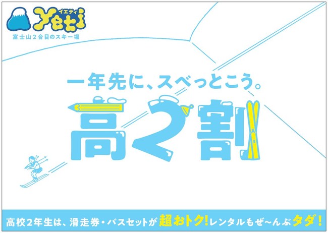 株式会社ピカ(本社:山梨県富士吉田市)が静岡県裾野市で運営する富士山南麓二合目のスノーパーク イエティでは、2022年1月15日(土)~3月21日(月祝)の期間、来年受験を控える高校2年生だけを全力でえこひいきするキャンペーン、その名も「高2割」を開催いたします。