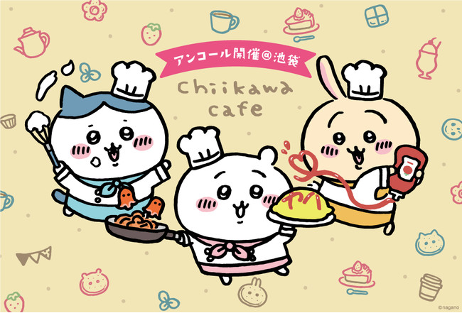 2021年に池袋・名古屋・大阪にて開催した初コラボカフェ「ちいかわカフェ」は、各会場ともに大盛況となりました。特に池袋はカフェ事前予約が全日程即完となり、多数のお客様から再度の開催要望をいただきました。その熱いご要望にお応えいたしまして、池袋にてアンコール開催決定!