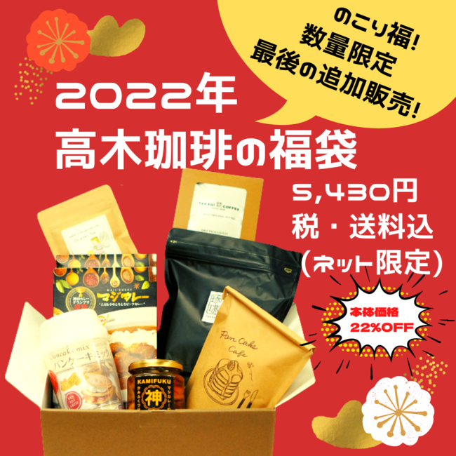 高木珈琲の福袋が人気のため、最後の追加販売です!