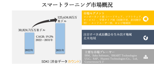 SDKI Inc.が「スマートラーニング市場ー予測2022ー2031年」の新調査レポートを2022年01月10日に発刊しました。レポートは、業界の新ビジネスチャンスとともに、市場とその成長見通しの完全な評価を提供します。さらに、2022ー2031年の予測期間中の市場規模と年間成長率が含まれています。