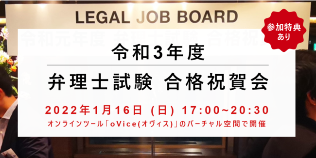 株式会社WILLCO(本社所在地:東京都港区、代表取締役:土屋佳大)が運営する、士業専門求人サイト「リーガルジョブボード」は、「令和3年度・弁理士試験 合格祝賀会」を1月16日(日)にオンラインにて開催いたします。