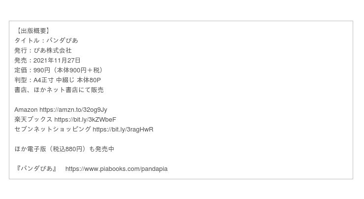昨年11月27日にぴあ株式会社より発売した『パンダぴあ』の重版が決定いたしました。