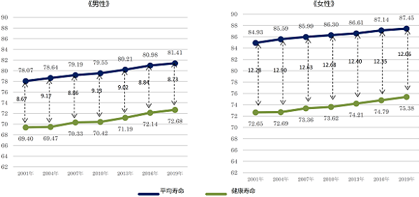 ※2019年の健康寿命については厚生労働省 令和3年12月20日 第16回健康日本21(第二次)推進専門委員会資料3-1参照