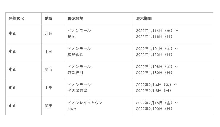 株式会社ゆうちょ銀行(東京都千代田区大手町2-3-1、取締役兼代表執行役社長 池田 憲人)は、「第46回ゆうちょアイデア貯金箱コンクール」入賞作品240点の展示会について、新型コロナウイルス感染拡大等の状況を踏まえ、2022年1月14日(金)から2022年2月20日(日)までに予定していた展示会の開催を中止することといたしましたので、お知らせいたします。