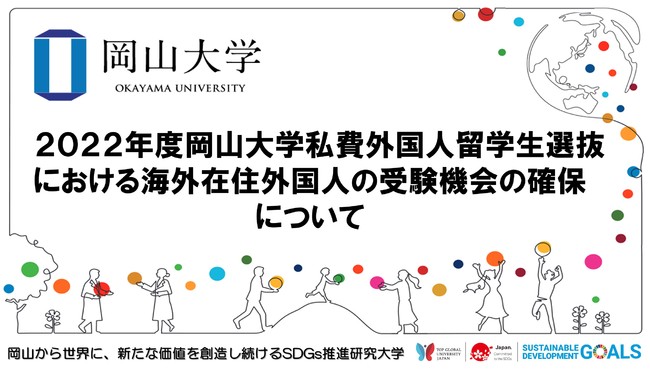 【岡山大学】2022年度岡山大学私費外国人留学生選抜における海外在住外国人の受験機会の確保について