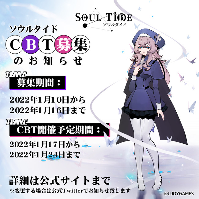 ソウルタイドは、1月10日(月)よりクローズドβテスト(CBT)の参加者を募集中です。一足先にソウルタイドの世界観を体験できるこの機会をお見逃しなく!詳細については公式Twitterをご覧ください。※今回のCBTはAndroidのみの対象になります。