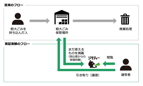 今回の提携では、戸吹クリーンセンターに持ち込まれる粗大ごみの中からまだ使えるものをジモティーに出品し、地域内の必要な方へお譲りいたします。当社からはジモティーを活用したリユースのノウハウを提供し、粗大ごみの中でまだ使えるものの選定基準や地域内での円滑な受け渡しをサポートいたします。また、八王子市の公式HPや公式Twitterアカウントでジモティーの紹介を行い、市民の方へのリユース意識の啓発を行います。