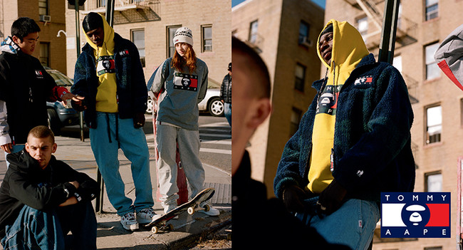 AAPE とTOMMY JEANS は 2022 年 1 月 18 日(火)より Tommy x AAPE のコラボレーション第 2 弾を発表しま す。両ブランドのテイストを融合させ、スケートボードやストリートカルチャーにインスパイアされたアパレルは、 防寒具、アクセサリー、そしてコレクターズアイテムのコレクションを提供します。