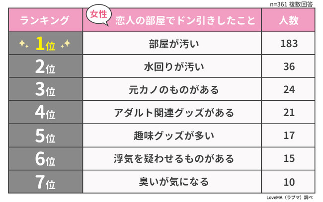 ・彼氏彼女の部屋でドン引きしたこと|男女とも1位は「部屋が汚い」