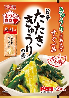 丸美屋食品工業株式会社(本社:東京都杉並区、社長:阿部豊太郎)では、材料1品とあえるだけですぐに副菜が作れる「おうち食堂 はい!小鉢」シリーズから「おうち食堂 はい!小鉢 旨辛たたききゅうりの素」を2022年2月17日(木)から新発売いたします。また、「おうち食堂 はい!小鉢 ナムルの素」を2022年2月からリニューアル発売いたします。